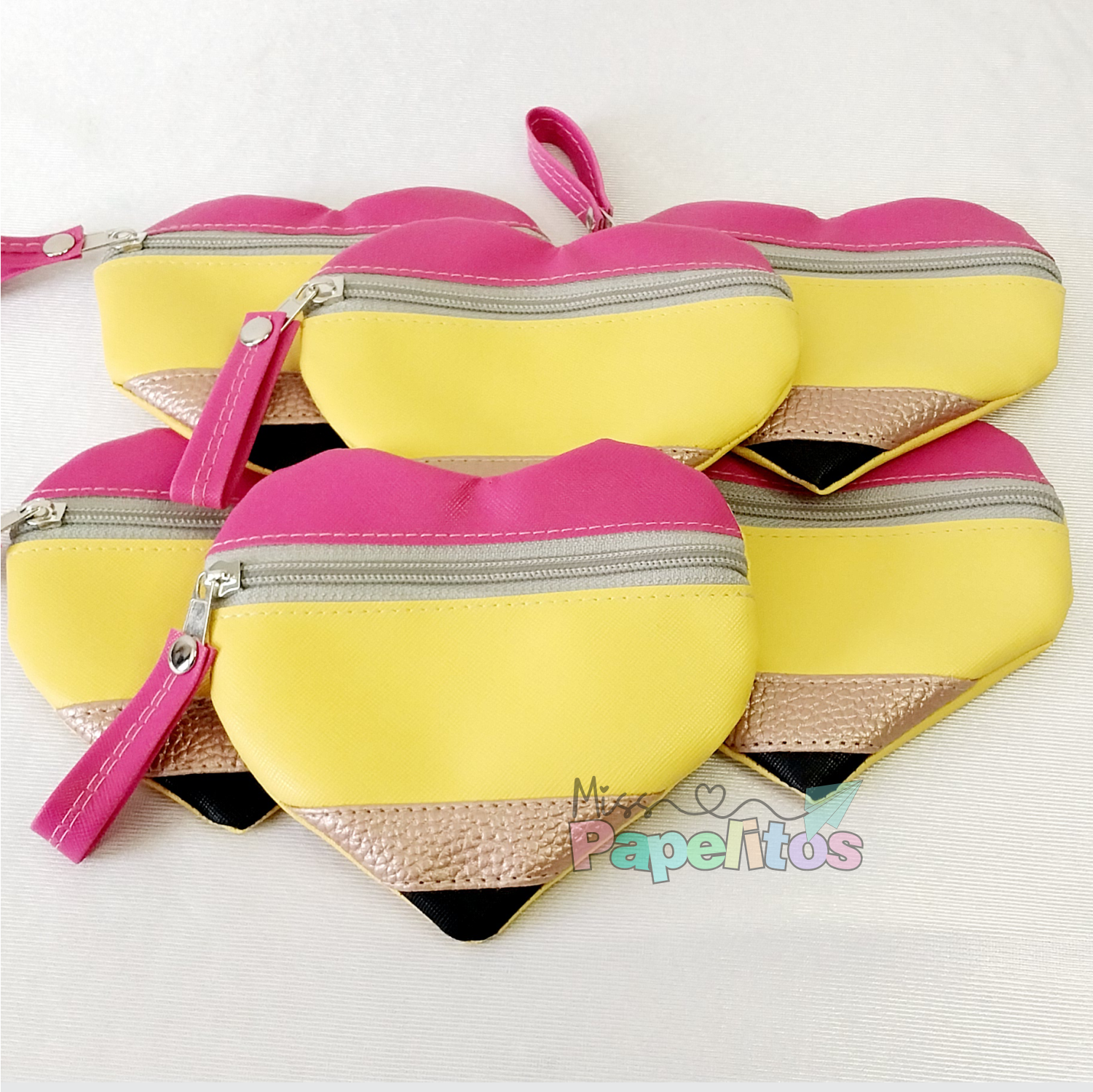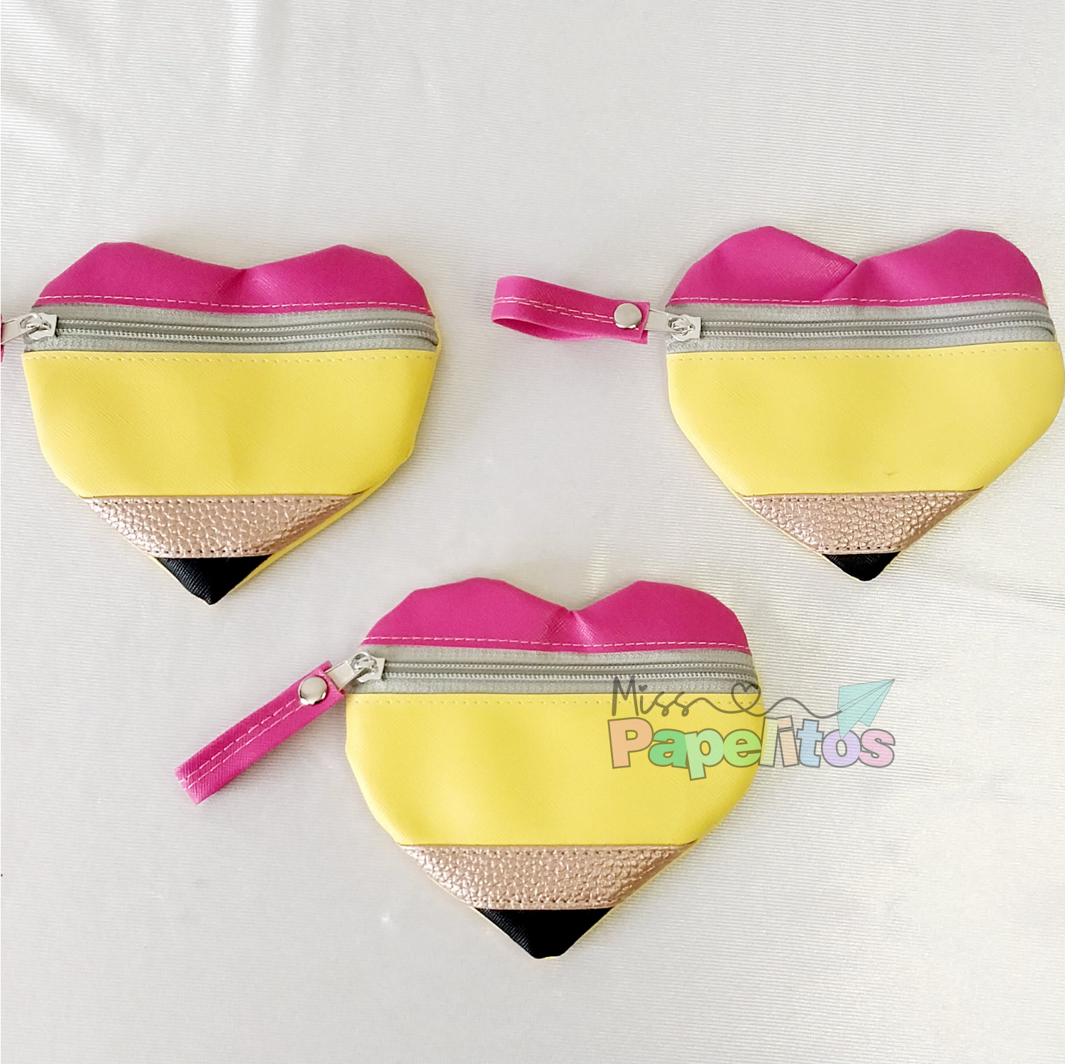 Monedero en forma de corazón de lápiz.medidas: 14X11 cmscon zipper.